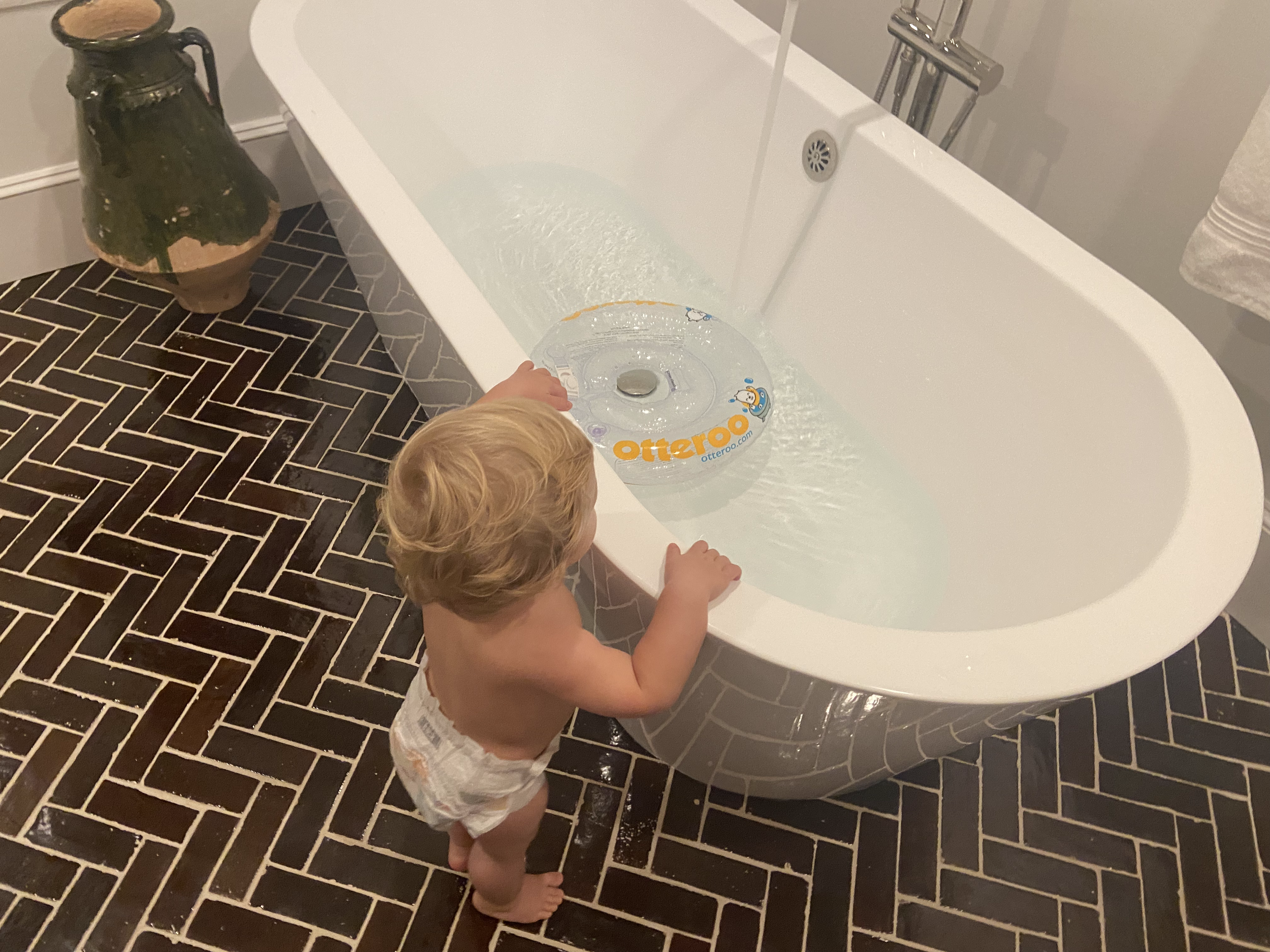 These classes are designed to combine the benefits of warm water with gentle stretching and developmental play. During class, 1-3 infants will be placed in a large, soaking bathtub with an Otteroo floatie that will perfectly support your infant’s head above water while allowing their body to relax freely below the water. Their arms and legs will remain unrestricted by a floatie to allow for independent movement, discovery, and play. We will teach you about the therapeutic and developmental benefits of water, the sensory-filled environment of the bathtub, and how to engage with your baby during bath time and water play. These classes are 1 hour in length, can be booked privately, with a friend, or with the option to meet a new friend.