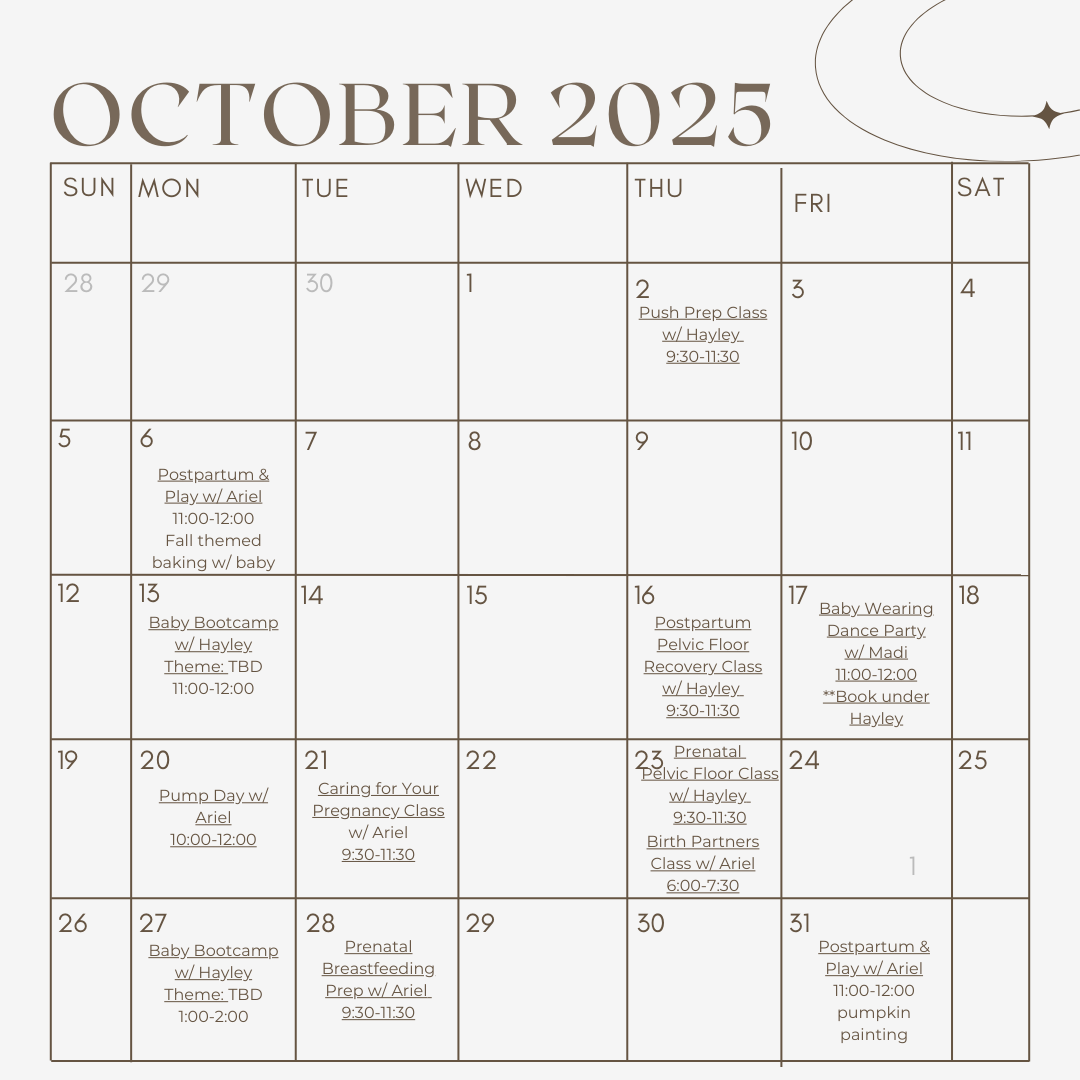 This class is taught by Ariel through RIL Doula Services but you book through WILD OT scheduling site. This is a partner based class.